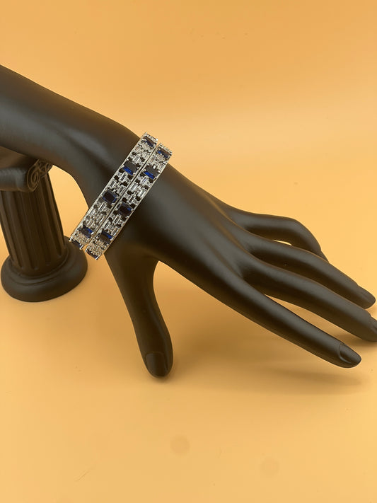 Indian Silver American Diamond | CZ Bangles | Blue Emerald Diamond Silver Bangle | CZ Diamond Bangle | Indian bangles | Bridal bangles | Bracelet | Indian Wedding Jewelry | Cubic Zirconia Bangle Jewelry Pack of 2