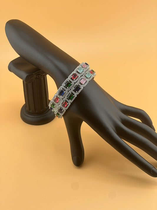 Indian Silver American Diamond | CZ Bangles | Multicolor Emerald Diamond Silver Bangle | CZ Diamond Bangle | Indian bangles | Bridal bangles | Bracelet | Indian Wedding Jewelry | Cubic Zirconia Bangle Jewelry Pack of 2