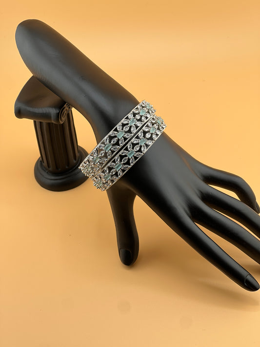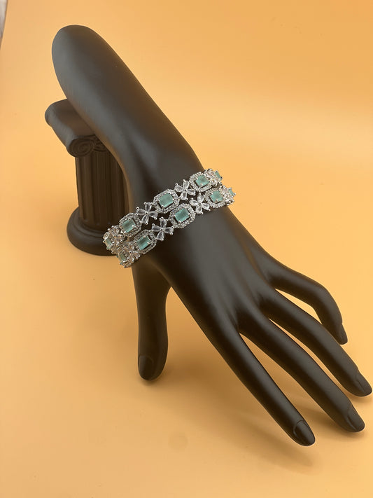 Mint Green Silver Finish American Diamond | CZ Bangles | Emerald Diamond Silver Bangle | CZ stone Bangle | Indian bangles | Bridal bangles | Bracelet | Indian Wedding Jewelry | Cubic Zirconia Bangle Jewelry Pack of 2