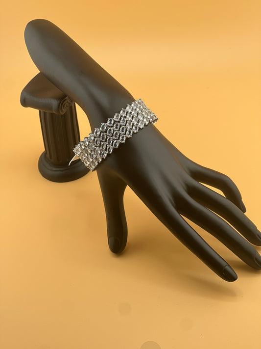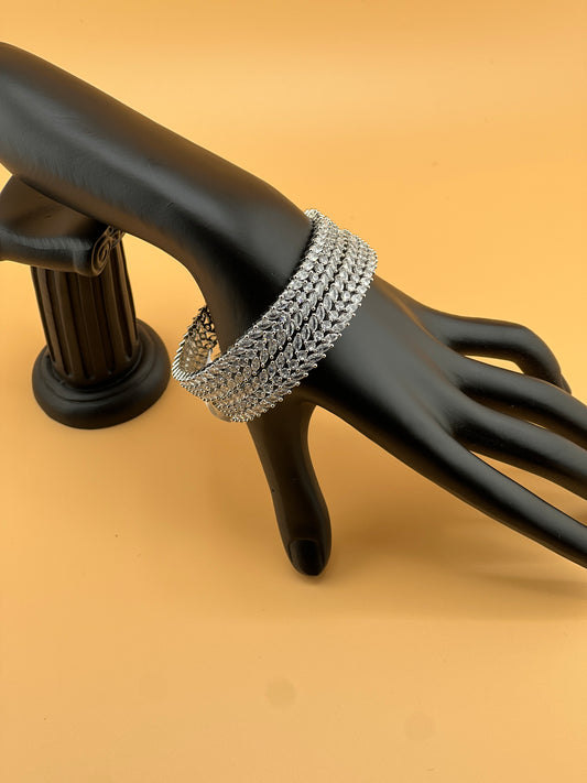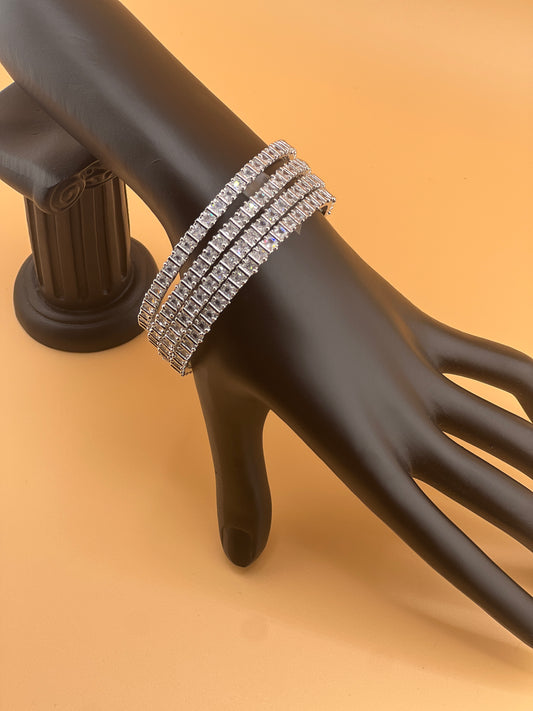 Silver Cubic Zirconia Bangle | Indian Jewelry | Set Of 2 Designer CZ Diamond Baguette Bangles | Statement Jewelry | Crystal Bangles | AD Bangles | Indian Bangles | Pakistani Jewelry | Wedding Bangles Set