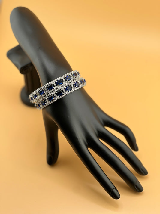 Blue Indian Silver American Diamond | CZ Bangles | Emerald Diamond Silver Bangle | CZ Diamond Bangle | Indian bangles | Bridal bangles | Bracelet | Indian Wedding Jewelry | Cubic Zirconia Bangle Jewelry Pack of 2