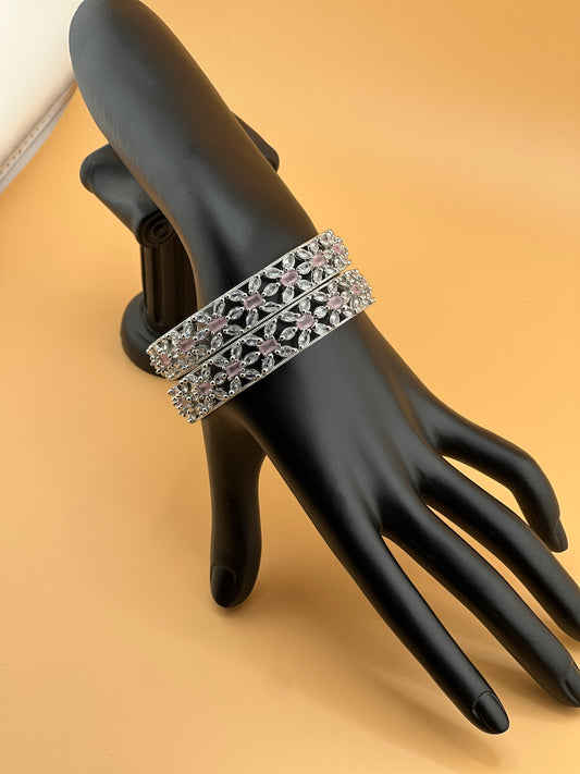 Pink Silver Finish American Diamond | CZ Bangles | Emerald Diamond Silver Bangle | CZ stone Bangle | Indian bangles | Bridal bangles | Bracelet | Indian Wedding Jewelry | Cubic Zirconia Bangle Jewelry Pack of 2