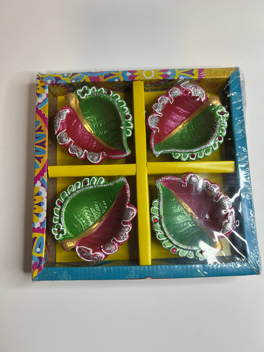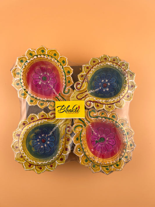 Color Clay Diya for Diwali Oil Wick Diya Small Diwali Decoration Indian Oil Lamp For Pooja Set of 4 Decorative Clay Diya Handmade Clay Diya Navratri Diwali Decor