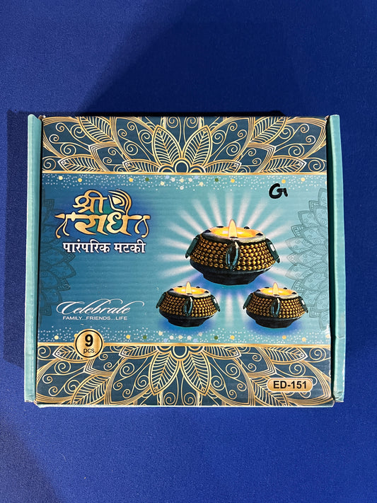Fancy Diwali Matki Diya with Wax Handmade Earthen Clay Terracotta Diya Set of 9 Tealight Candle Festival Event Decoration Diwali Decor Mitti Diya