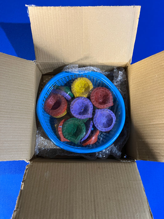 Multicolor Clay Diya for Diwali Oil Wick Diya Diwali Decoration Indian Oil Lamp For Pooja Decorative Clay Diya Handmade Diya Diwali Decor (Tokri - Set of 24)