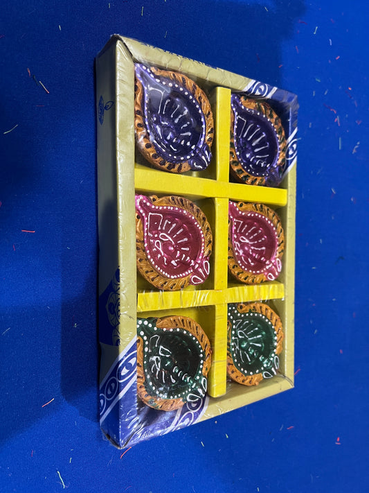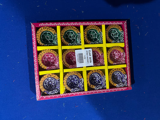 12 Pc Set of Multicolored Diwali Decoration Clay Diyas Handmade/Handcrafted Natural Earthen Oil Lamp/Traditional Diyas. Deepawali Diya Lamp. Earthen Oil lamp.