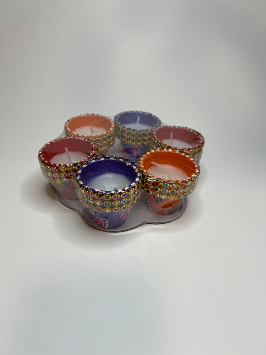 Diwali Pot Style Diya with Wax Handmade Earthen Clay Terracotta Diya Set of 6 Tealight Candles Festival Event Decoration Diwali Decor Mitti Diya