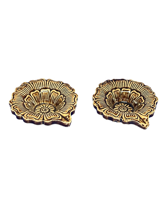 Ceramic Diya for Diwali Oil Wick Diya Small Diwali Decoration Indian Oil Lamp For Pooja Set of 2 Decorative Diya Handmade Diya Navratri Diwali Decor