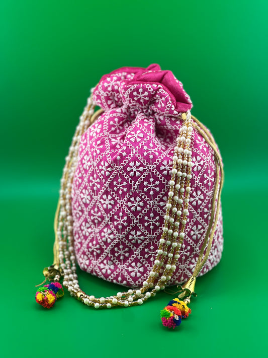 Indian Wedding Favor CHIKAN POTLI BAG | Indian Ethnic Potli Bag | Hand Bag | Hand Purse for Party Wedding and Gifting | Women Potli Bag | Pouch | Coin | Phone | Key | Jewellery Purse for Women & Girls