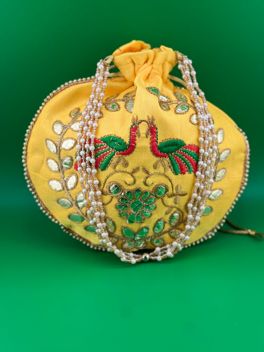 Indian Handmade Women's Embroidered Potli Bags | Peacock Potli Bags | Wedding Favor Return Gift | Hand Bag | Hand Purse for Party Wedding and Gifting | Women Potli Bag | Pouch | Coin | Phone | Key | Jewellery Purse for Women & Girls