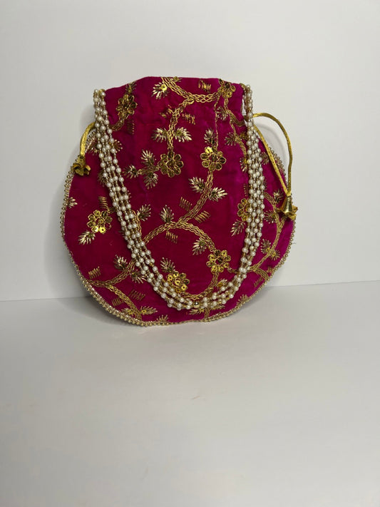 Designer Indian Wedding Potli Bag, Silk Embroidery | Indian Ethnic Potli Bag | Hand Bag | Hand Purse for Party Wedding and Gifting | Women Potli Bag | Pouch | Coin | Phone | Key | Jewellery Purse for Women & Girls