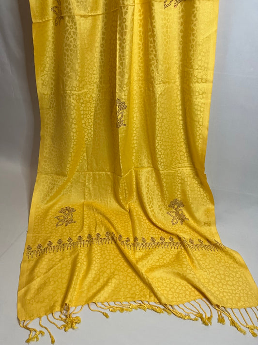 Silk Wool Blend Scarves Stole With Shimmery Crystal Work and Hand Embroidery
