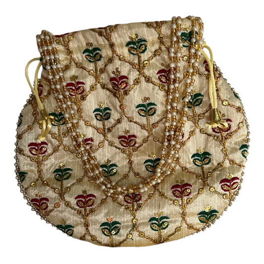 Silk Embroidery Work Indian Ethnic Potli Bag | Hand Bag | Hand Purse for Party Wedding and Gifting | Women Potli Bag | Pouch | Coin | Phone | Key | Jewellery Purse for Women & Girls