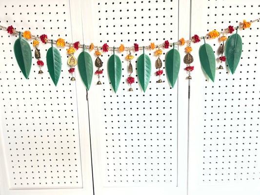 Green Leaves Ganesha Door Hanging | Indian Wall Toran Mandir Temple Auspicious Navratri Decoration | Entryway Bandarwal