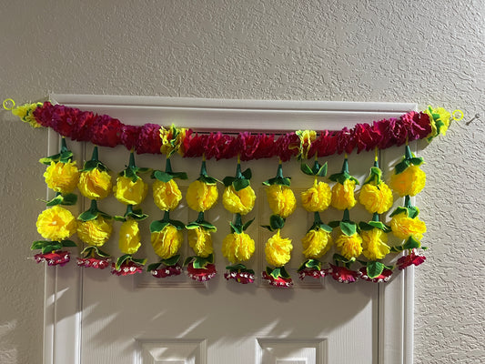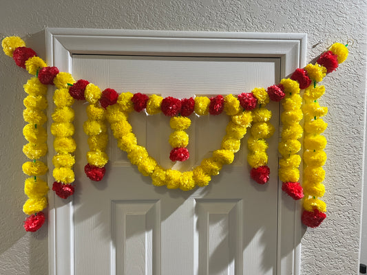 Artificial Marigold Fluffy Flowers Garlands Door Toran Set/Decorative Door Hanging Bandanwar (Yellow & Red) for Decoration Size:- 40"