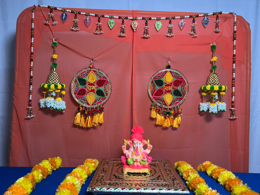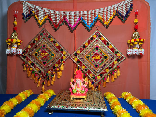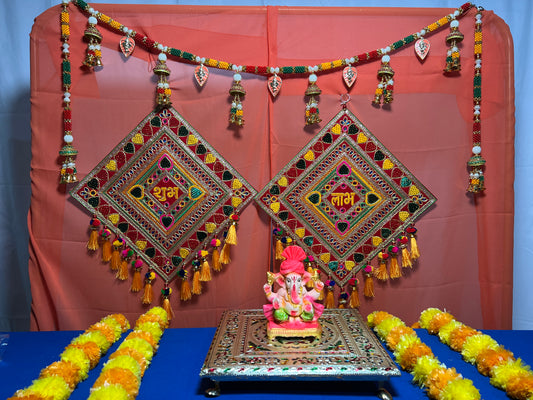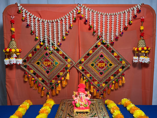 Shubh Labh Ganesha Toran Bandanwar Door Wall Cloth Hanging Traditional Indian Home Office Temple Pooja Deepawali Festival Decor Decoration Gifting